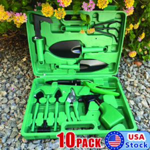10pc Garden Tool Set Vegetable Flower Gardening Hand Tools Kits w/ Carrying Case