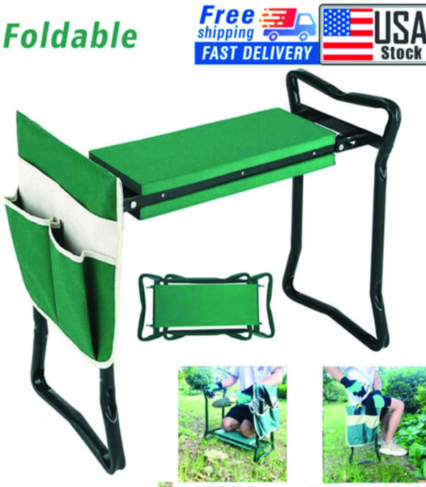 Foldable Kneeler Garden Kneeling Bench Stool Soft Cushion Seat Pad & Tool Pouch