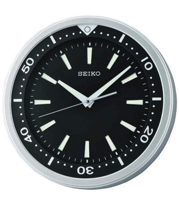 Seiko 14″ Modern “Watch Face” Black & Silver Quiet Sweep Wall Clock QXA723ALH