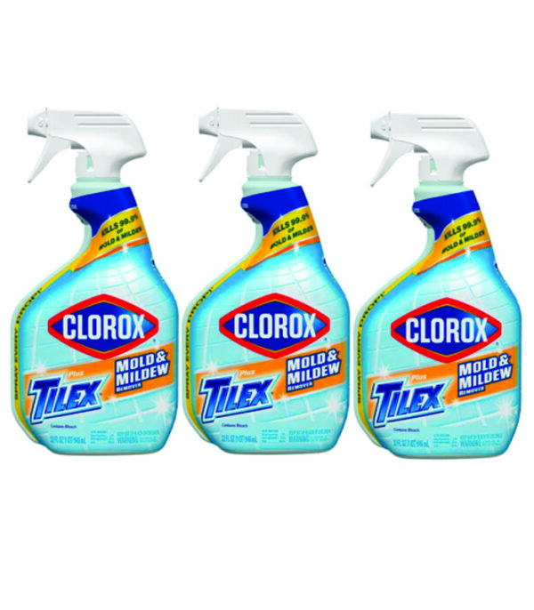 Three 32 oz. spray bottles of Clorox plus tilex mold and mildew remover spray with bleach removes ugly stain and kills mold and mildew that cause them, package may vary